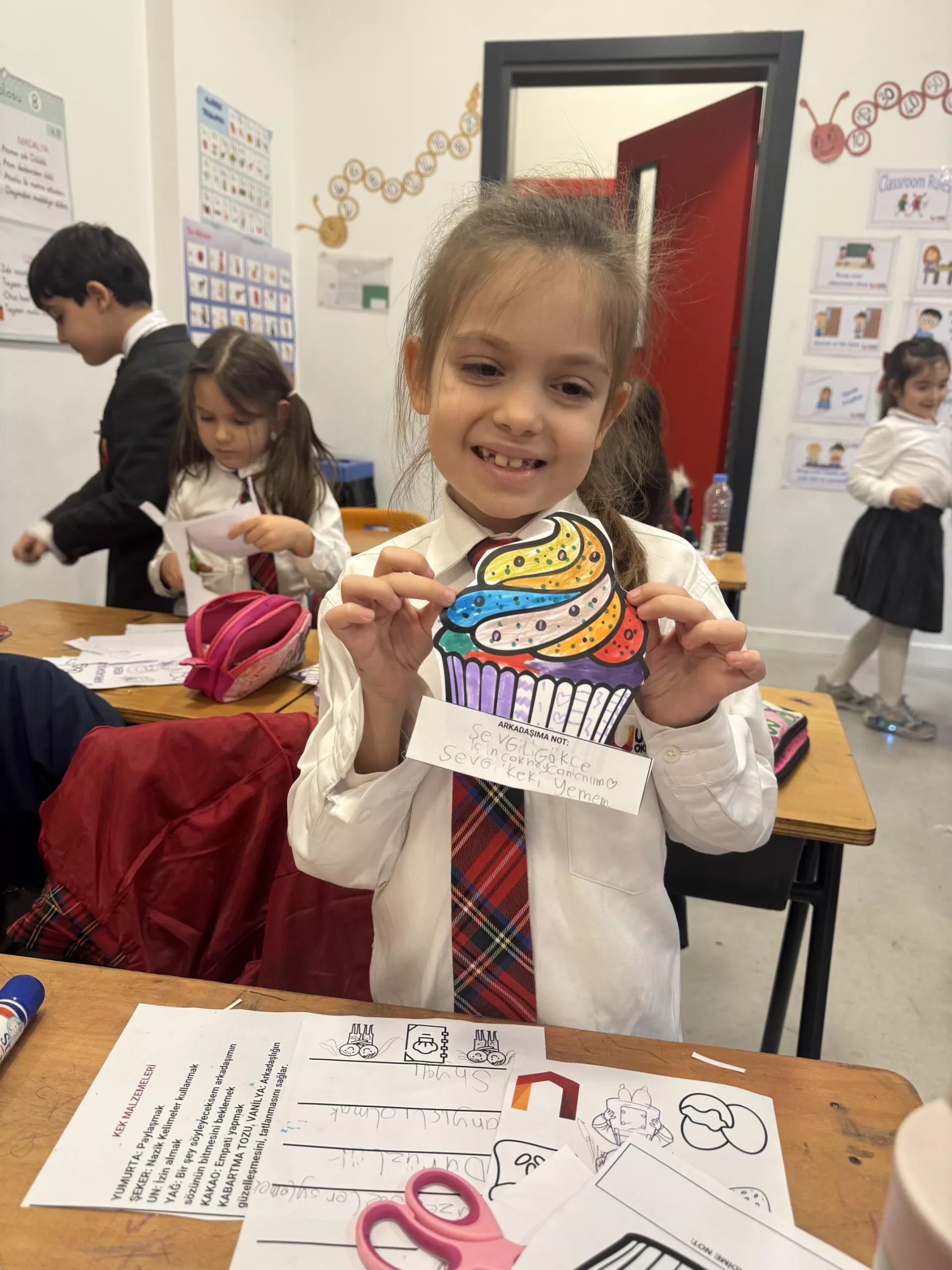 Rehberlik derslerinde gerçekleştirilen etkinliklerle öğrenciler iyi bir arkadaş olmanın ne anlama geldiğini keşfetmektedir.