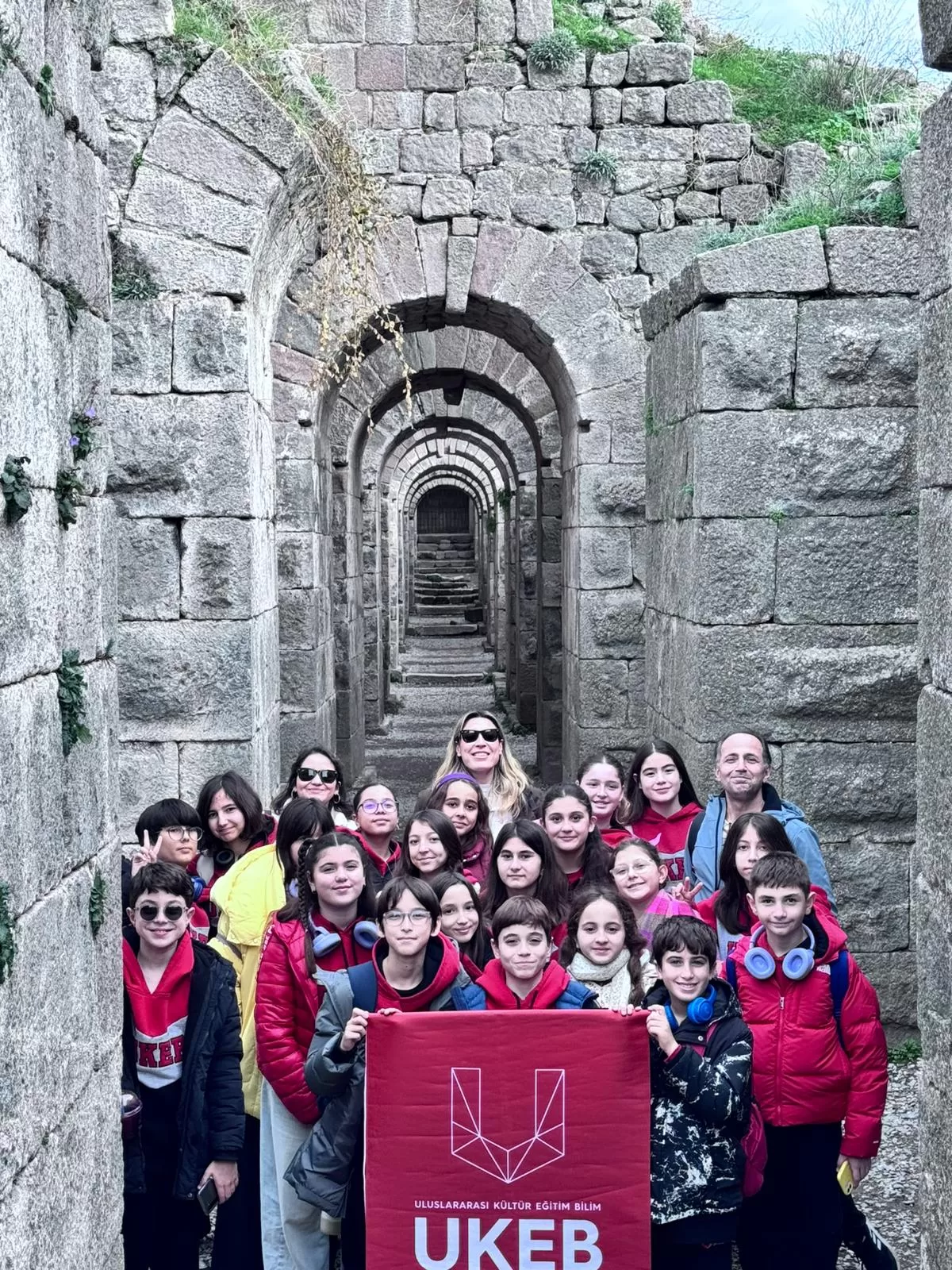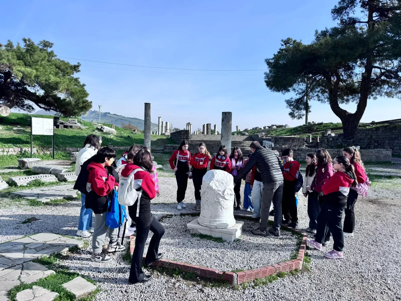 UKEB Okulları 6. sınıf öğrencileriyle 10 Aralık Çarşamba günü Bergama’nın tarihi derinliklerine unutulmaz bir eğitim yolculuğu gerçekleştirildi. Derslerde işlenilen konuları yerinde görmek için antik dünyanın en önemli sağlık merkezi Asklepion ve Helenistik dönemin görkemli zirvesi Akropolis ziyaret edildi. Bergama’nın simgesi olan ve bilginin aktarımında çığır açan parşömenin nasıl yapıldığı uygulamalı olarak öğrenildi.