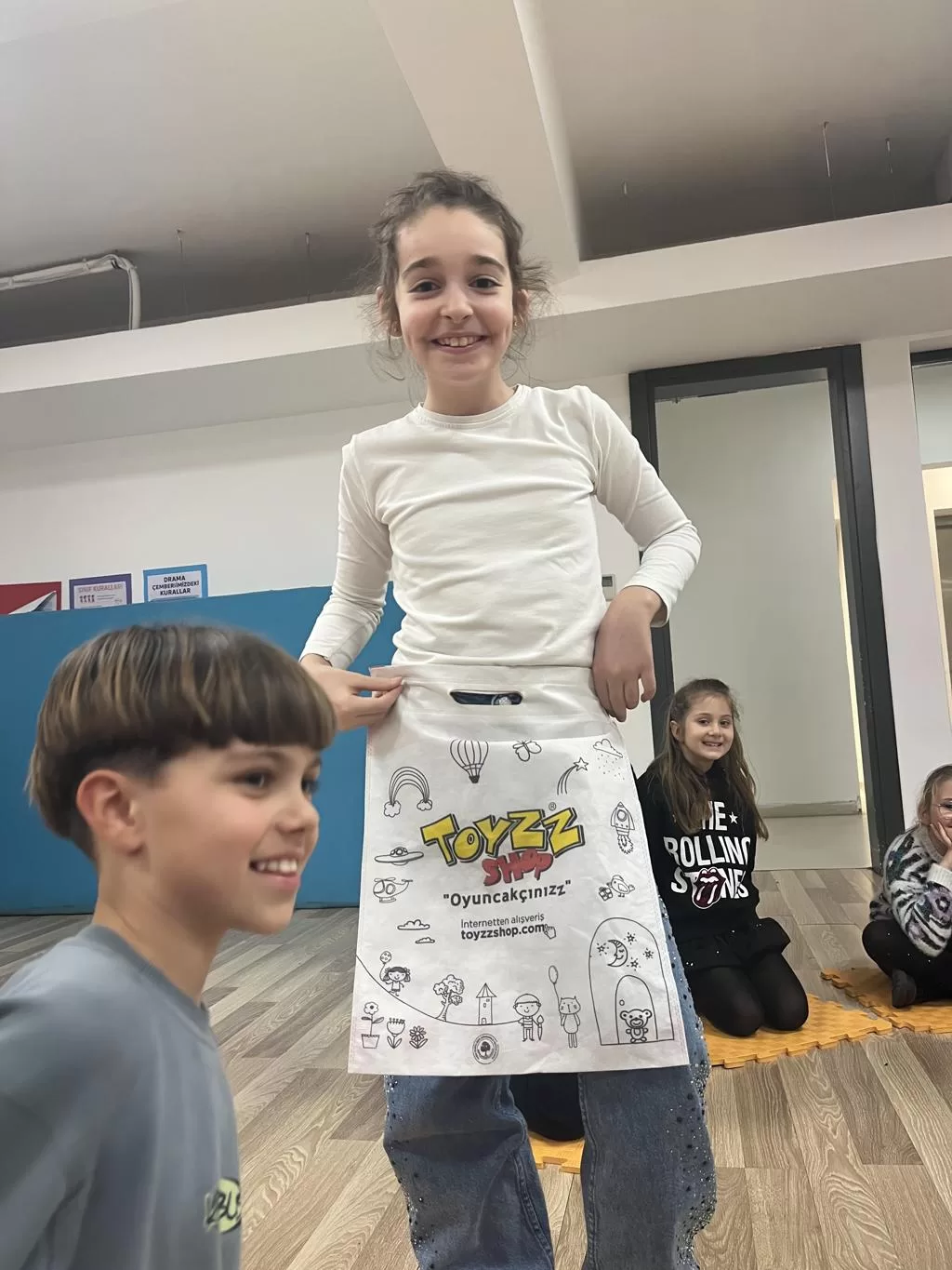 Yaratıcı drama derslerinde “Bir poşeti başka hangi amaçlarla kullanabiliriz?” sorusuyla yola çıkıldı. Sıradan bir poşet; kimi zaman pelerin, kimi zaman şapka, kimi zaman kukla, kimi zaman dürüm, kimi zaman etek ya da uçan bir balona dönüştü.