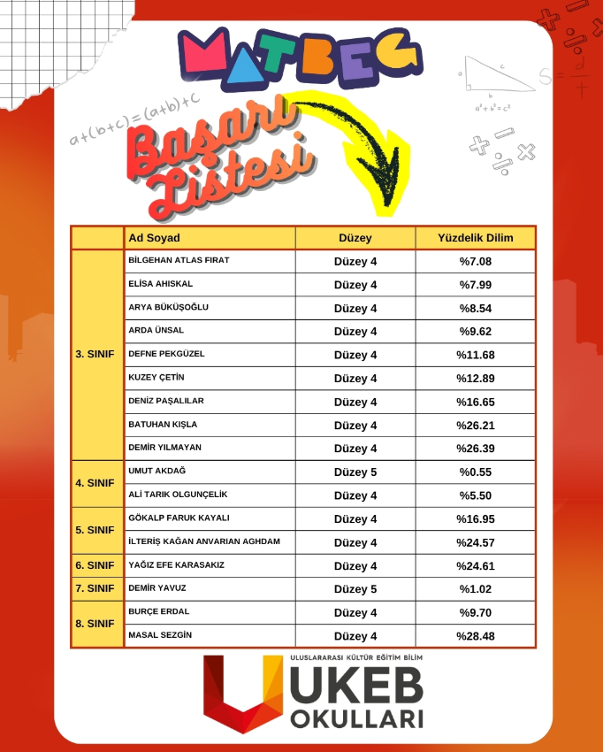 UKEB Okulları olarak, öğrencilerimizin üst düzey düşünme becerilerini ölçen MATBEG sınavında elde ettikleri harika sonuçların gururunu yaşıyoruz.